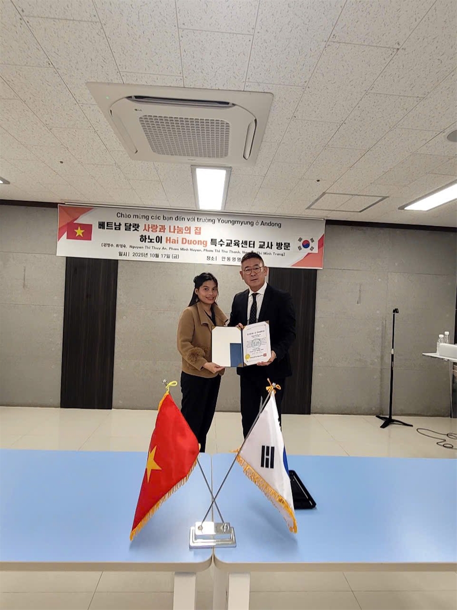 Ngày 17/10/2025, hai cô giáo của Trung tâm Giáo dục Đặc biệt Hải Dương có mặt tại thành phố Andong, tiếp tục chuỗi thời gian tham quan học tập theo chương trình hợp tác giáo dục với tổ chức SGF (Sharing & Giving Foundation).