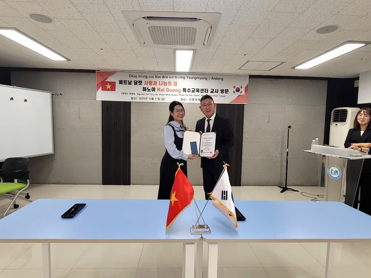 Ngày 17/10/2025, hai cô giáo của Trung tâm Giáo dục Đặc biệt Hải Dương có mặt tại thành phố Andong, tiếp tục chuỗi thời gian tham quan học tập theo chương trình hợp tác giáo dục với tổ chức SGF (Sharing & Giving Foundation).